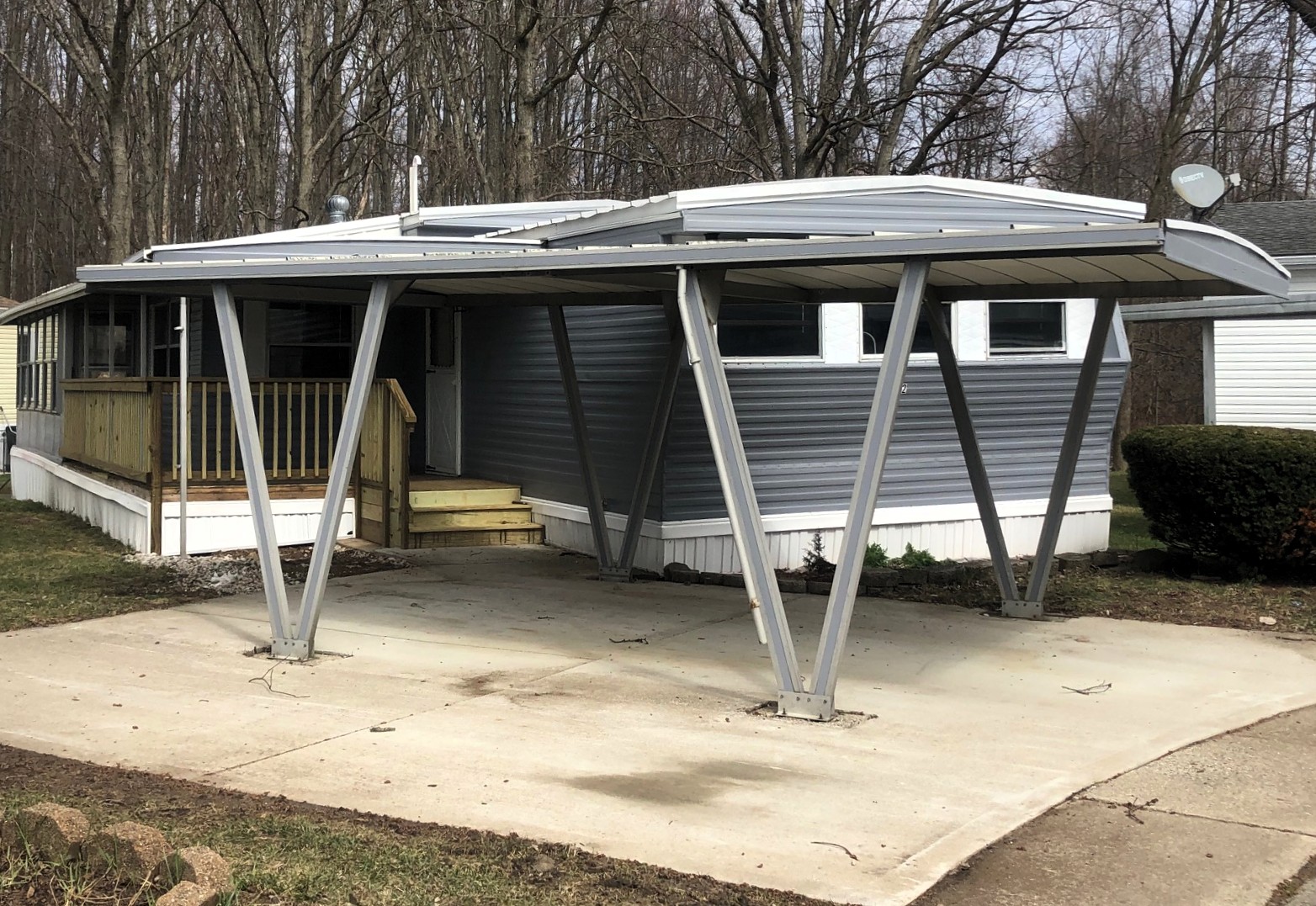 This refurbished Duke Crown Royal, offers a one-car carport, a walk-in shower, an enclosed porch, a shed and many new features.